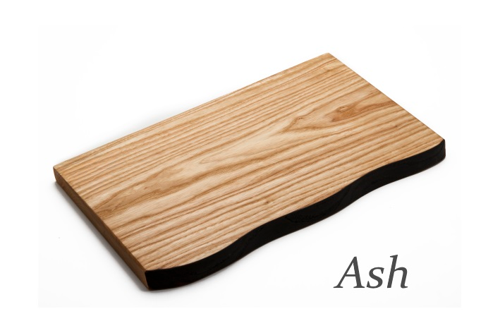 Individually crafted reversible, flat surface serving/cutting board with exposed, burned waned edge.